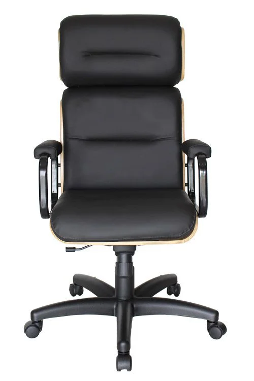 Com estrutura em madeira natural e acabamento em lâmina de nogueira ou imbuia, seu visual transmite calor e imponência. O assento e encosto são revestidos em couro sintético ou natural, com costuras delicadas que reforçam o estilo executivo. A base giratória nylon preta com rodízios garante mobilidade suave e estabilidade, enquanto o sistema de regulagem de altura e inclinação proporciona uma experiência personalizada para longas jornadas de trabalho.